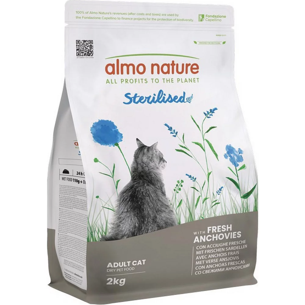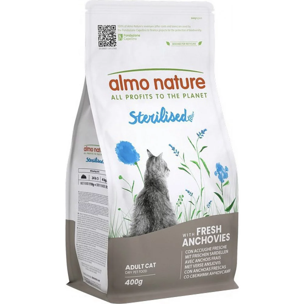 Almo Nature Holistic Cat Sterilised – це повнораціонний сухий корм для дорослих стерилізованих котів, виготовлений зі свіжим анчоусом. Цей корм спеціально розроблений для підтримки здоров'я стерилізованих котів і забезпечує всі необхідні поживні речовини.