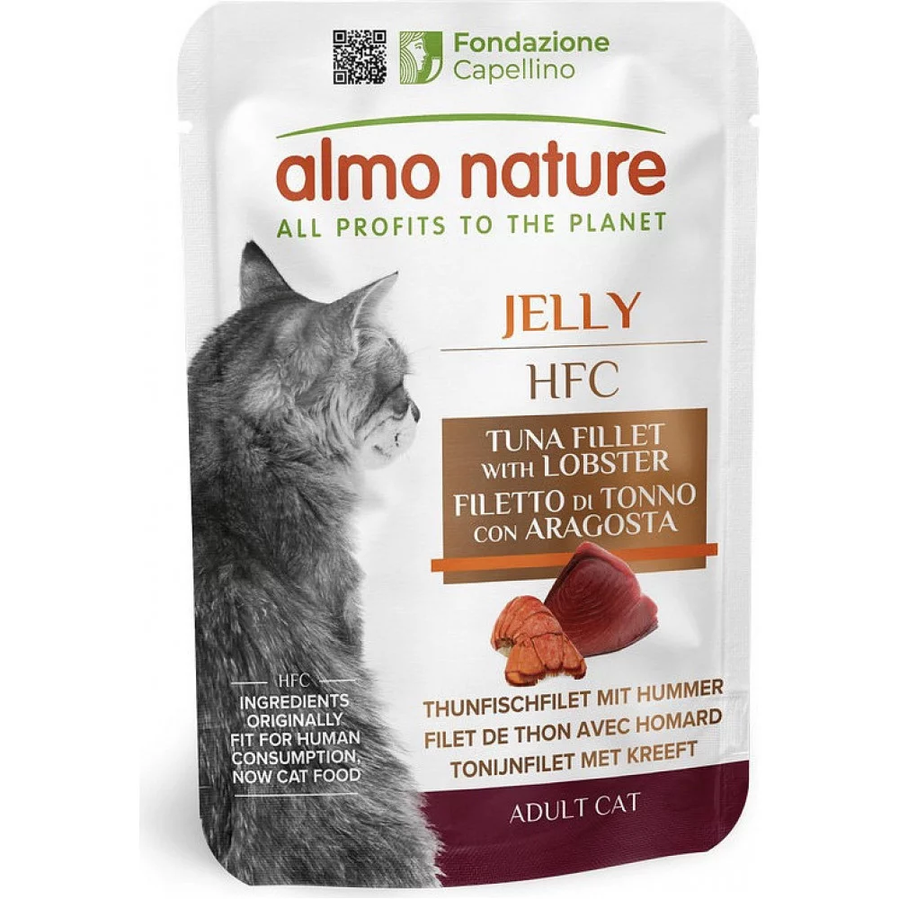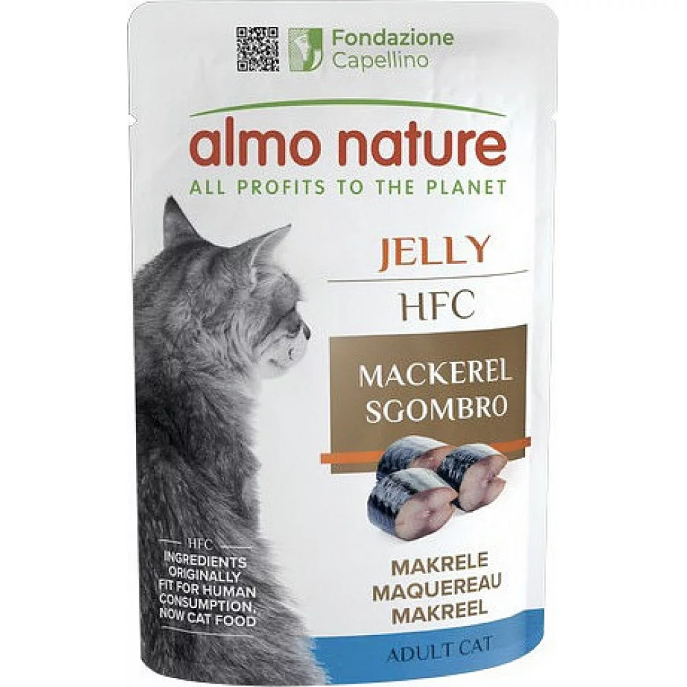 Almo Nature HFC Cat Jelly, пауч, 55 г – курка – додатковий консервований корм для дорослих котів у ніжному желе, виготовлений із натуральних HFC-інгредієнтів (спочатку призначених для харчування людини). Ідеальний для щоденного годування, забезпечує кота легкозасвоюваним білком і насиченим смаком.