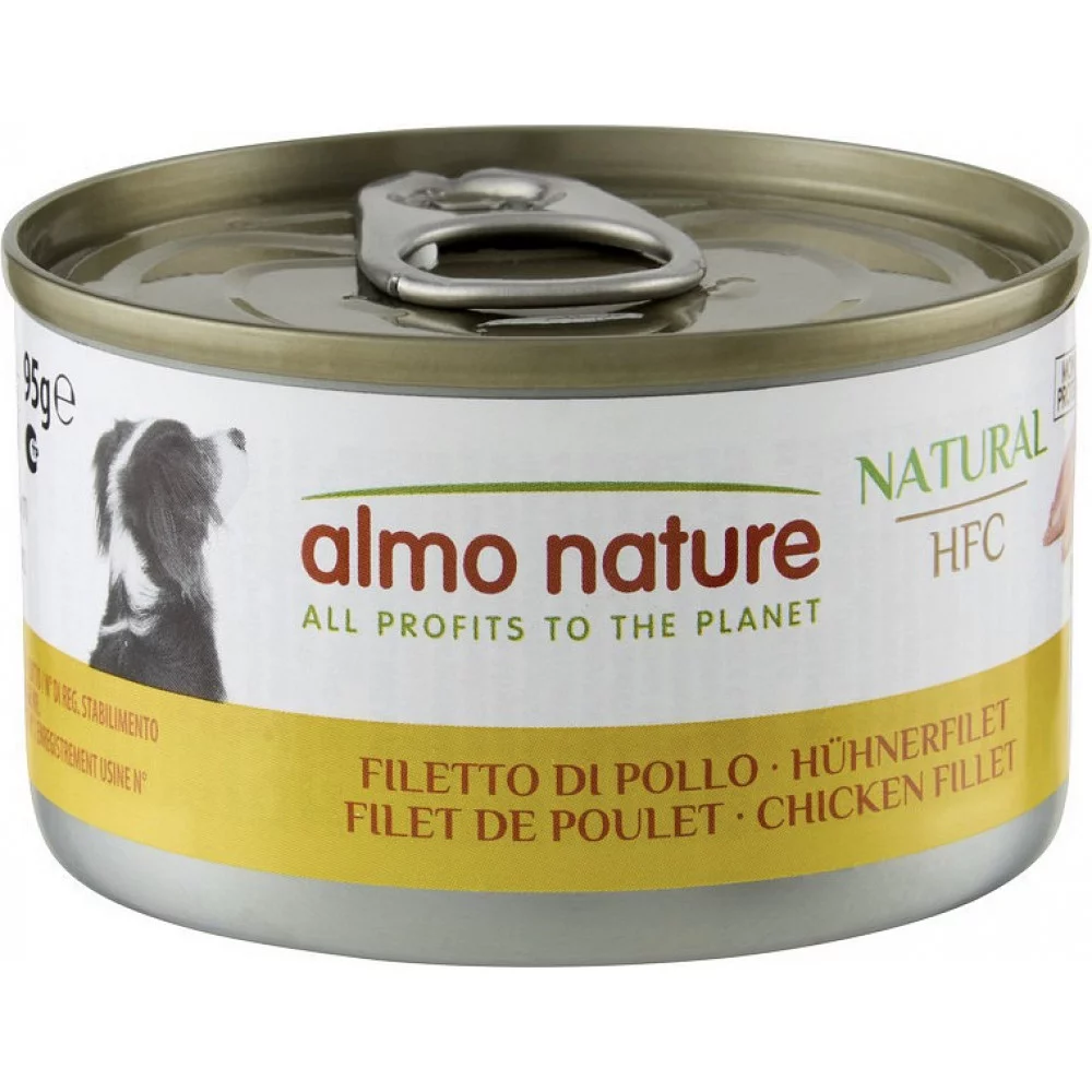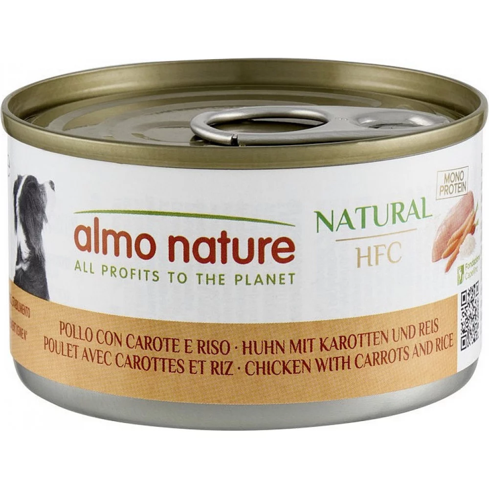 Almo Nature HFC Dog Natural – консервований корм для собак, що містить дикий кабан з шинкою та лісовими ягодами.Цей продукт виготовлений з інгредієнтів HFC-якості, які спочатку були призначені для людського споживання, що гарантує високу якість та натуральність корму.