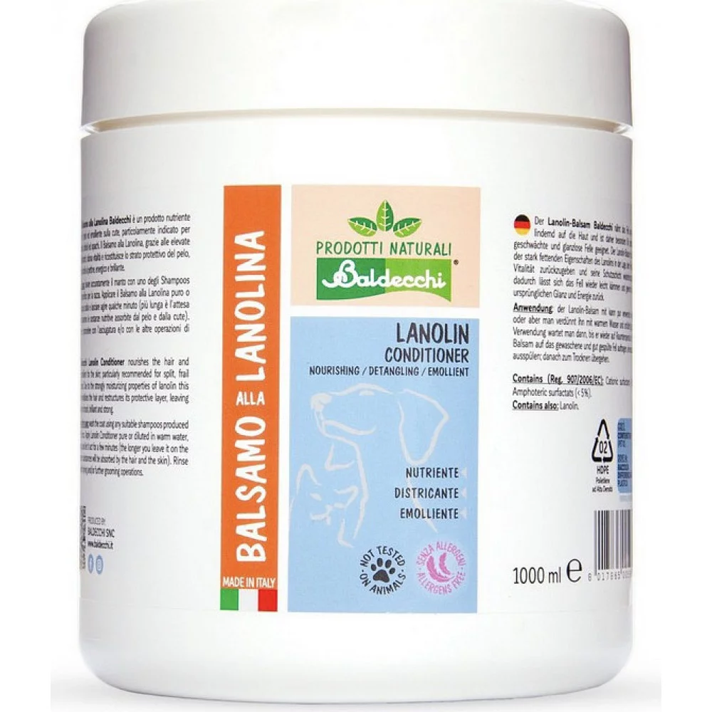 Baldecchi – відновлюючий бальзам-кондиціонер з ланоліном для собак і котів. Засіб глибоко живить шерсть та шкіру, відновлює структуру волосся, полегшує розчісування, робить шерсть м’якою та блискучою.