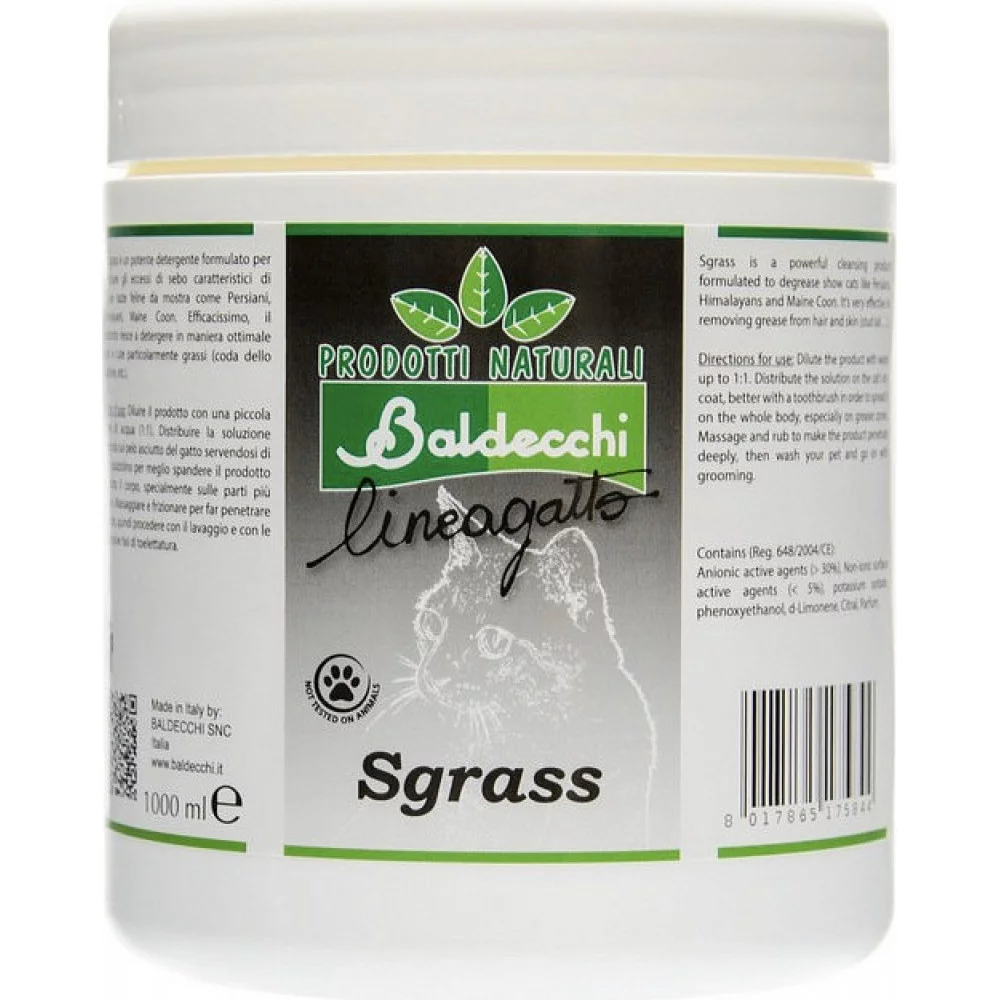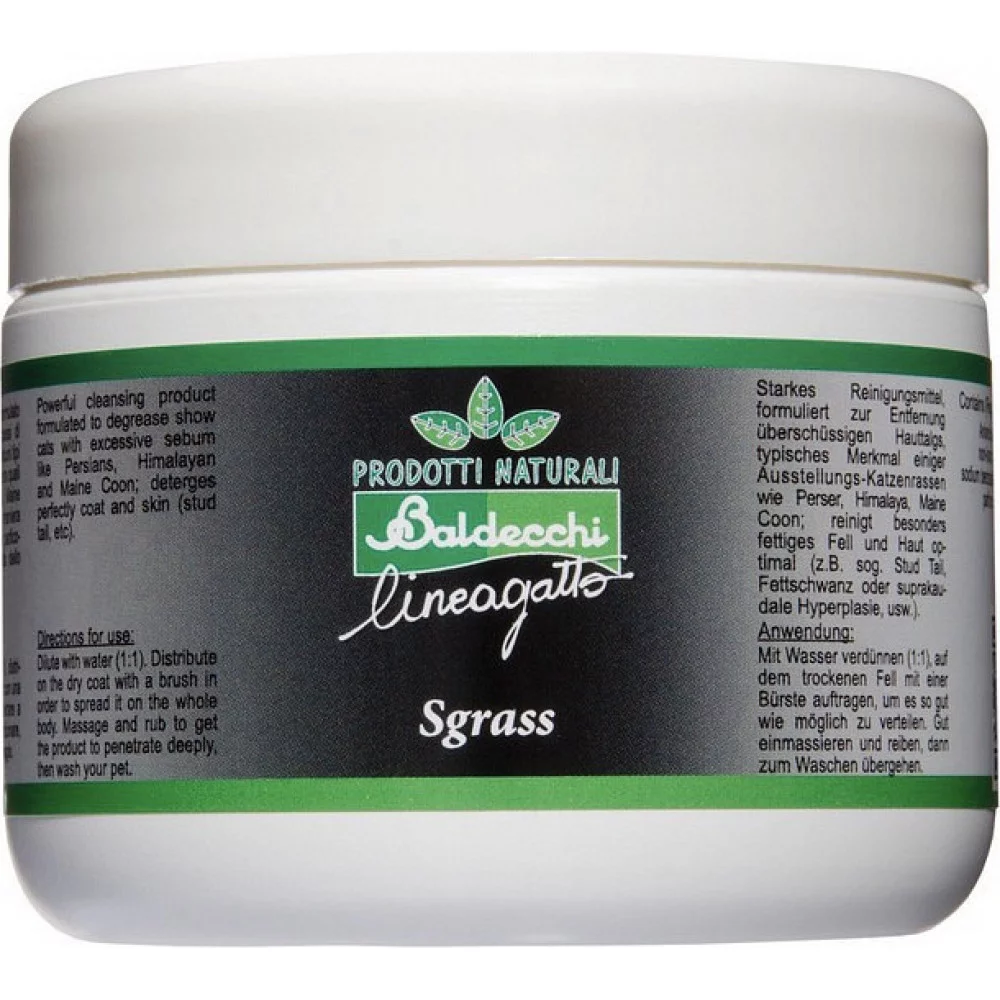 Паста Baldecchi «Грасс» — спеціальний засіб для знежирення хвоста собак і котів. Формула ефективно зменшує надмірну жирність шерсті, робить хвіст чистим і доглянутим. Підходить для використання вдома та перед професійними процедурами грумінгу.