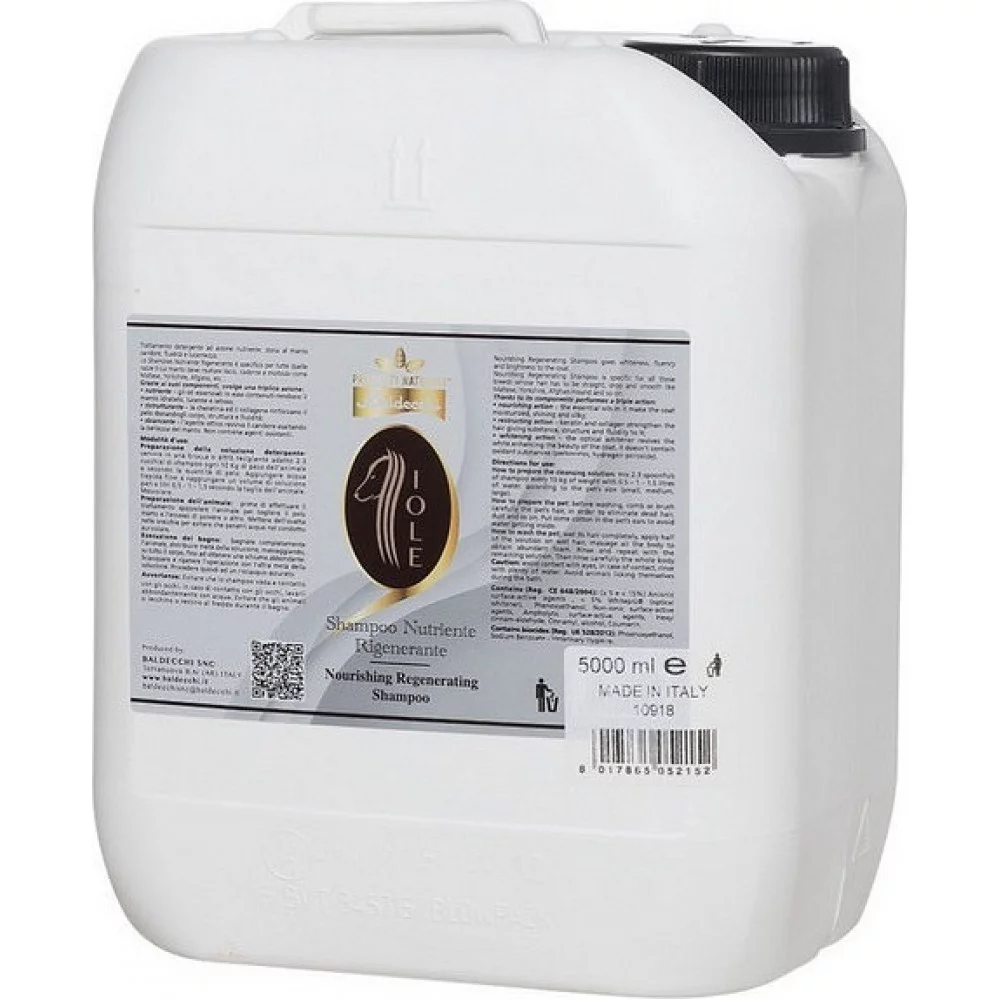 Baldecchi Iole Поживний відновлюючий шампунь — ніжна формула для глибокого живлення та відновлення шерсті собак і котів. Завдяки м’яким очищувальним компонентам із збалансованим pH шампунь делікатно очищує шкіру та шерсть, інтенсивно зволожує та пом’якшує волосся, відновлює його структуру та надає природний блиск.