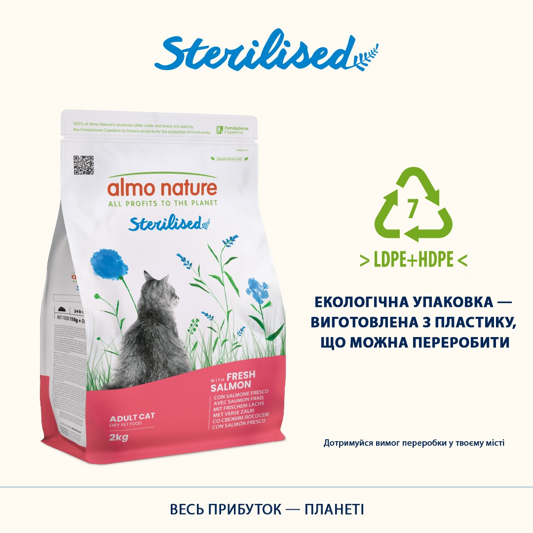Almo Nature Holistic Cat для дорослих стерилізованих котів зі свіжим лососем