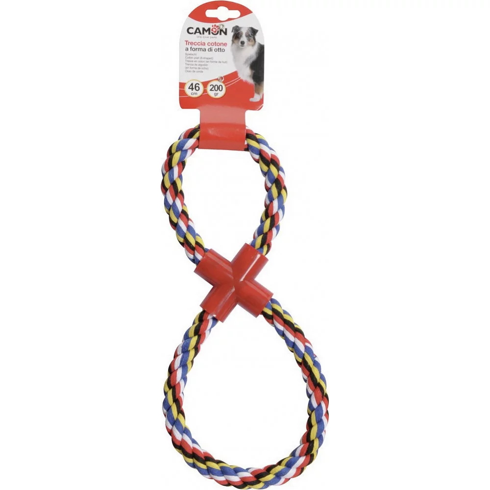 Іграшка CAMON "Канат вісімка" 46 см, 200 г – міцна плетена іграшка для собак, яка ідеально підходить для активних ігор, зокрема перетягування та жування. Завдяки своїй формі «вісімки» вона зручна для утримання як власником, так і собакою, а натуральний матеріал сприяє очищенню зубів.