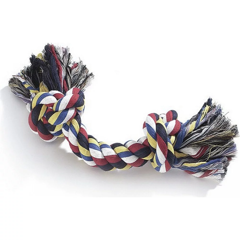 Іграшка CAMON "Канат з двома вузлами" – міцна та практична іграшка для собак, що ідеально підходить для перетягування, жування та активних ігор. Завдяки натуральному бавовняному волокну вона сприяє очищенню зубів і масажу ясен під час гри.