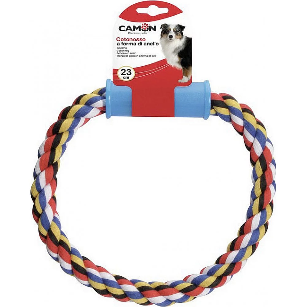 Іграшка CAMON "Кільце з канату" 23 см, 350 г – міцна та зручна іграшка для собак, виготовлена з натурального бавовняного канату. Вона ідеально підходить для активних ігор, перетягування, жування та тренування сили щелеп.