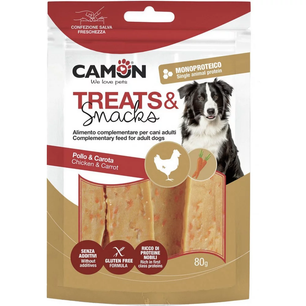 Camon "Снек-джерки" - це відмінний вибір для власників, які шукають здорові та натуральні ласощі для своїх собак. Вони не тільки задовольняють потребу собаки в жуванні, але й сприяють їхньому загальному благополуччю та здоров'ю, роблячи ці ласощі чудовим доповненням до їхнього щоденного раціону.