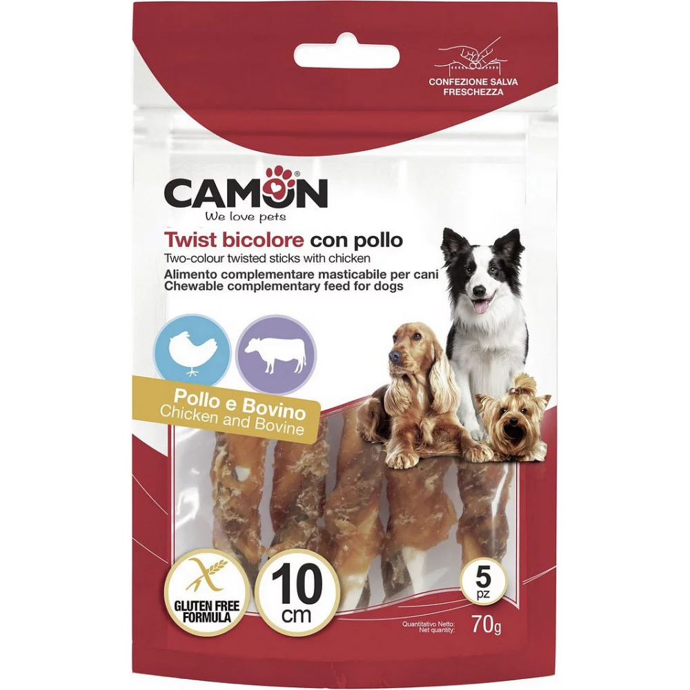 Ці смачні двоколірні палички CAMON — чудовий спосіб побалувати вашого собаку і водночас подбати про його здоров'я. Виготовлені з якісної яловичої шкіри та обгорнуті куркою, палички забезпечують тривале жування та підтримку гігієни зубів. Ідеальні для собак усіх порід, цей снек є відмінним джерелом білка та природним засобом для очищення зубів.