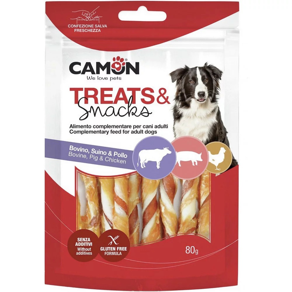 Ці двоколірні палички CAMON — ідеальний снек для собак, який поєднує смак та користь. Виготовлені з яловичої шкіри та свинини, обмотані ароматною куркою, вони дарують вашому улюбленцю насолоду та допомагають підтримувати здоров'я зубів і ясен. Цей снек чудово підійде для тривалого жування і відмінно розважає вашого собаку.