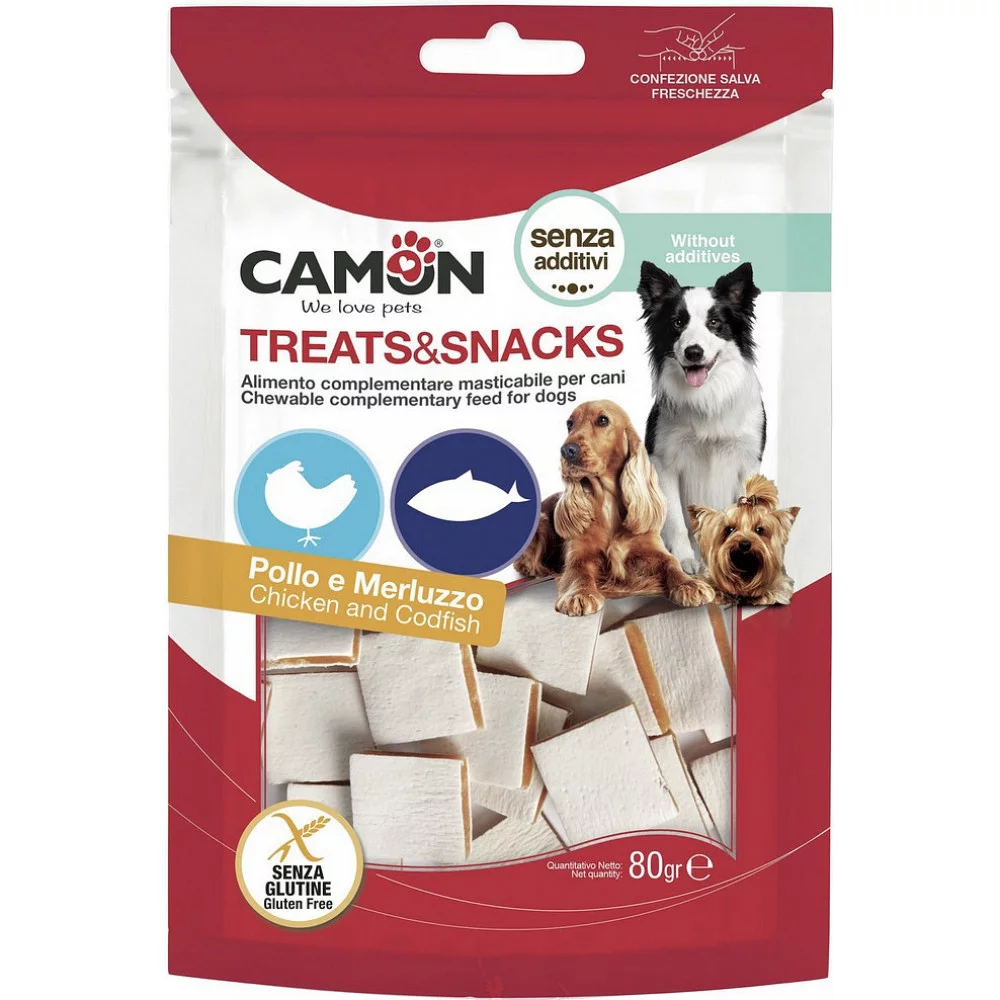 Снек CAMON у вигляді квадратного сендвіча з куркою та тріскою — чудовий смаколик для вашого улюбленця, що поєднує користь і задоволення. Натуральні інгредієнти, такі як високоякісна курка та тріска, забезпечують собак необхідними білками, вітамінами та омега-кислотами для підтримки здоров'я та активного способу життя. Ідеально підходить для частування, заохочення чи просто задоволення під час тренувань.