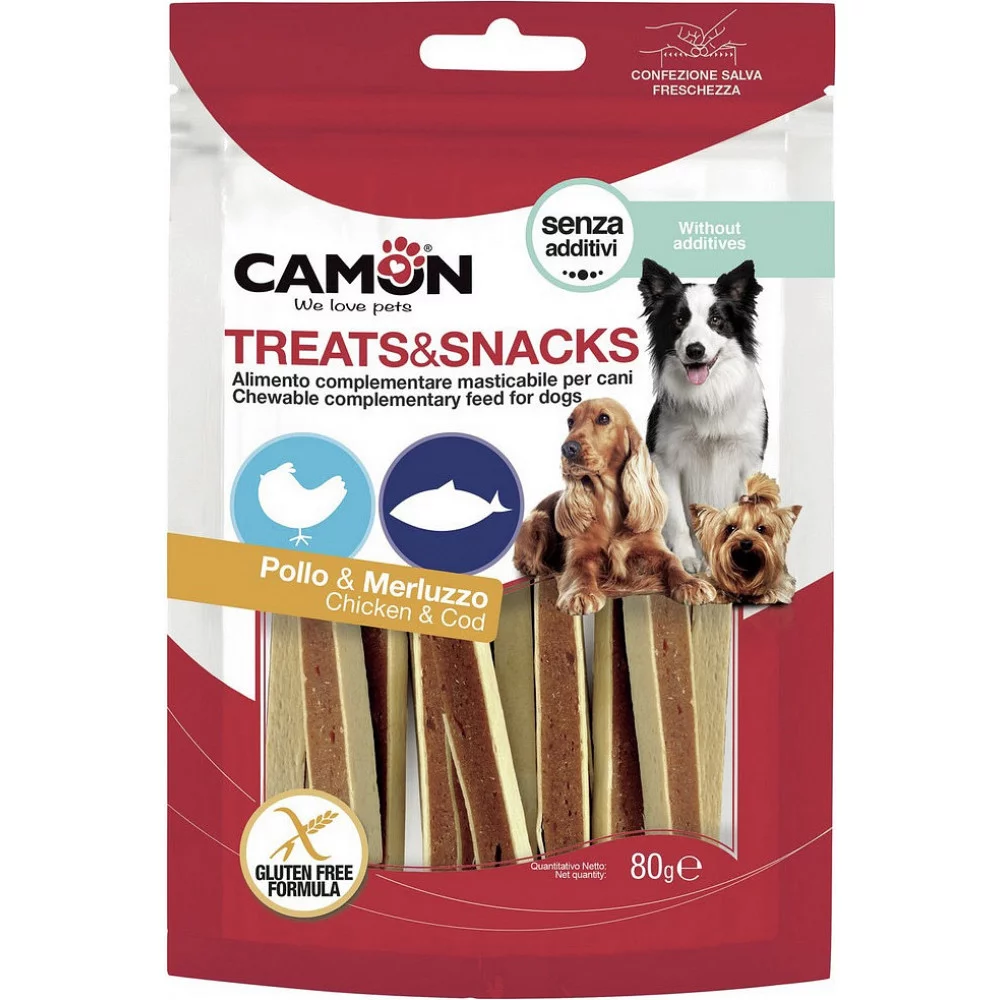Снек для собак CAMON сендвіч з куркою і тріскою (80 г). Додаткове харчування для дорослих собак.