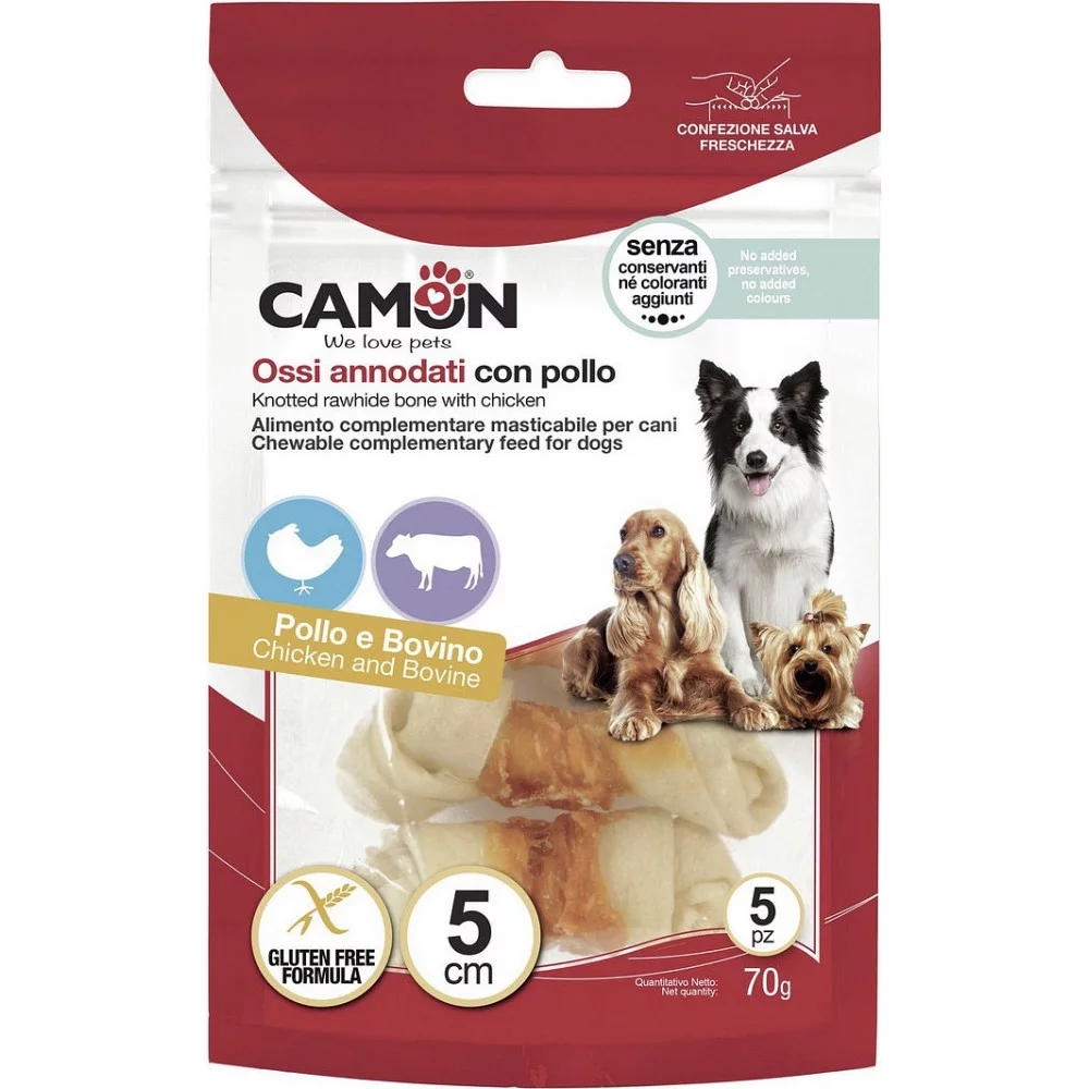 Цей смачний та корисний снек для собак від CAMON поєднує в собі яловичу шкіру і курку, створюючи смачну та тривалу розвагу для вашого улюбленця. В'язана кісточка з натуральних інгредієнтів ідеально підходить для підтримки здоров'я зубів та ясен, а також для задоволення жувального рефлексу.