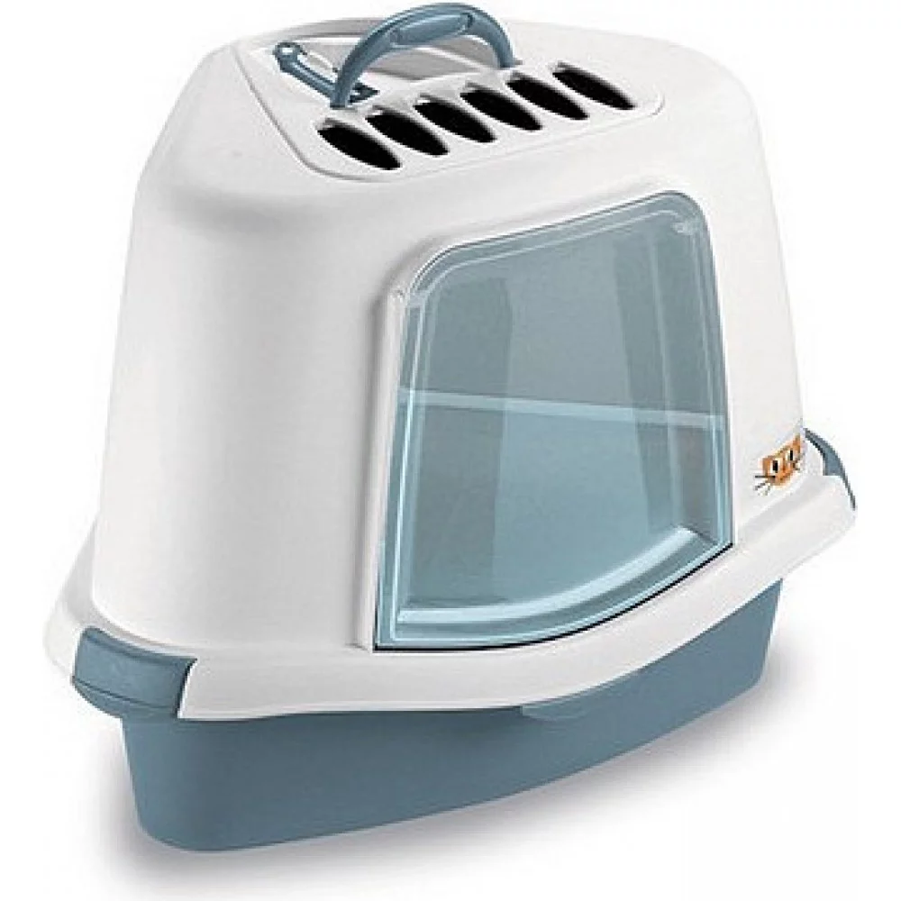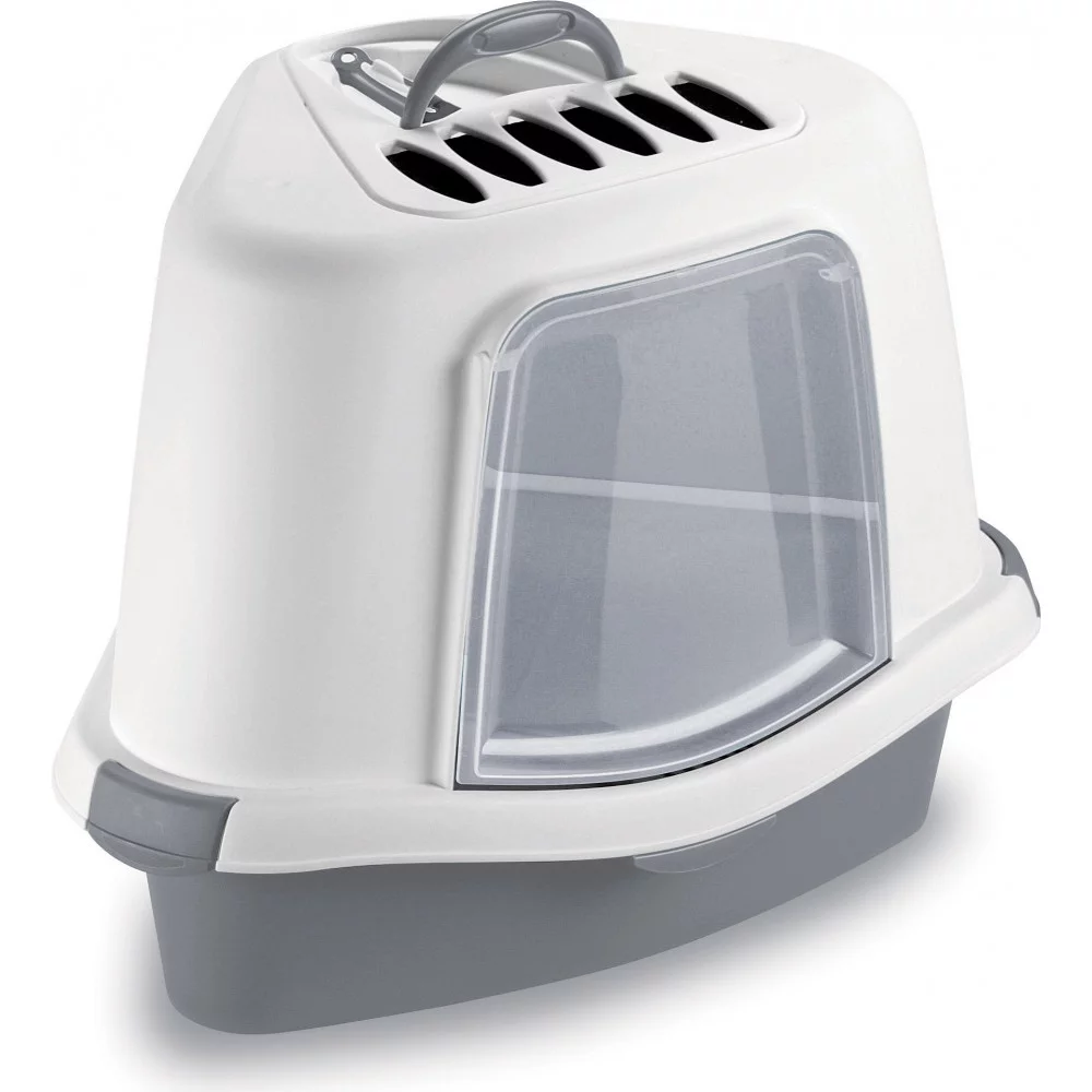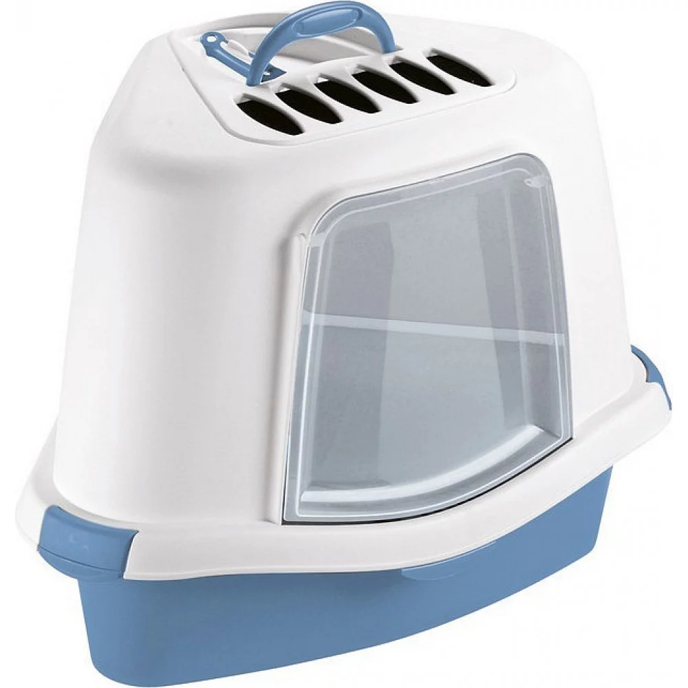 Це дуже місткий і зручний туалет для наших вихованців, у якому котик буде відчувати себе в безпеці. Туалет оснащений відкидними дверцятами для полегшення входу і виходу, ручкою для транспортування, гігієнічною лопаткою та вугільним фільтром для усунення неприємних запахів. Його особлива форма дозволяє зручно розміщувати його і в кутах кімнат, тим самим економлячи простір.